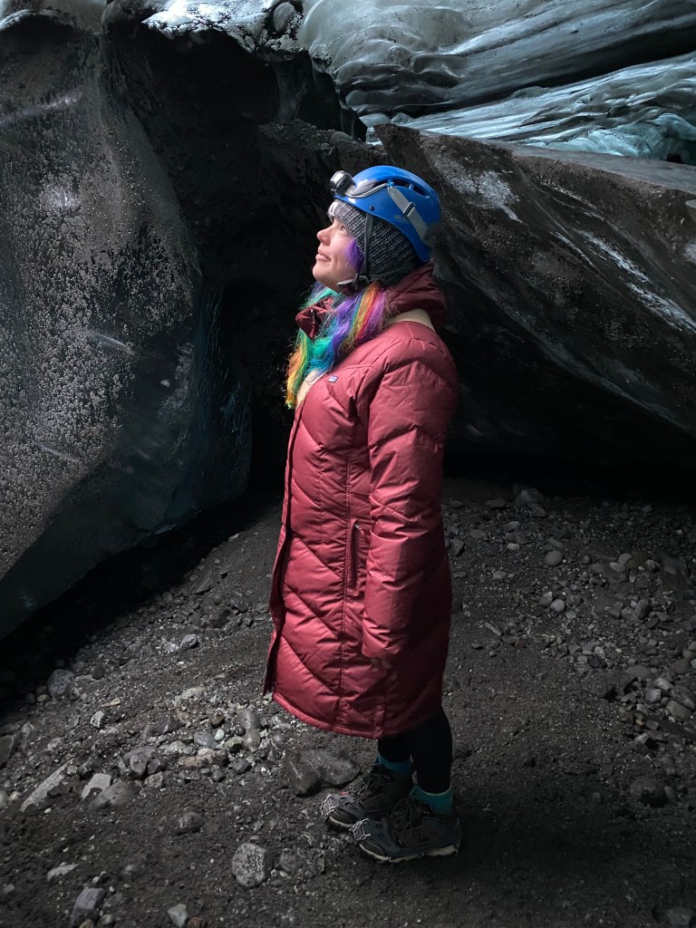 From the black sand beach we caught some of the last rays of light from the church in Vik before racing to our last surprise of the day, the Yoda cave. We literally caught the last rays of light at the Yoda Cave, Rocky’s timing couldn’t have been more perfect. Then everyone succumbed to the motion of the car and fell asleep during the 3 hour drive to our hotel. We spent the night near the Jökulsárlón glacier lagoon since we’d be going to the ice caves the next day. That night the northern lights put on quite the show and I fell in love. The northern lights kept me up a few more hours than I would have liked that night and yet it was so incredibly worth it.