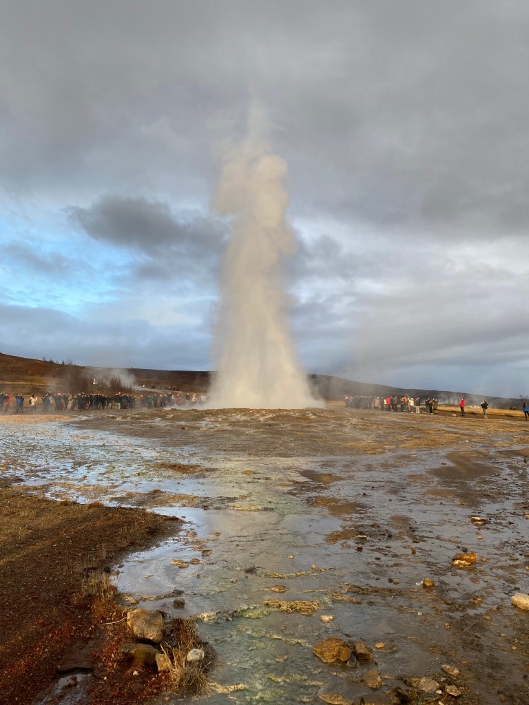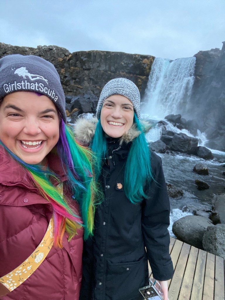 Sunday morning we were up bright and early for the pick up for our three day tour we’d be embarking on to hopefully chase the northern lights and see the glacier ice caves. We found ourself at the bus stop huddled around 100 other tourists all looking for their tour buses as well. Our mini bus finally pulled up and we met Rocky from Troll Expeditions, our tour guide for the week. After a few more stops we were finally off on our adventure. The first day of our tour was to the Golden Circle. Our first stop along with how so many other tour companies operate their Golden Circle tours was to Þingvellir national park. I’ve been twice and been ‘meh’ about both times. I understand its importance and why tours will continue to go there but I was super keen on visiting a waterfall at the far end of the park that I hadn’t been to yet. Mel and I quickly took some of the classic view point photos before we moved onwards to Öxarárfoss (Pro tip: foss means waterfall in Icelandic). It is a bit of a walk but it’s gorgeous and probably my favorite view in the park. From there we basically ran back to the van to make it back in time – note to future Iceland travelers specifically those short on time or on tours, don’t make our mistake. Skip the view point and just go to the waterfall and if you have time on your way back then stop at the viewpoint. You’ll thank me later. Then Rocky made one of his ‘surprise’ stops. There were a lot of these during the next couple of days. One was to a viewpoint and another to a spot where you could feed and take photos with a couple of horses on the side of the road. Afterwards we ended up at Gullfoss where the morning light was shining on this powerful waterfall in a way that is every photographers dream. The mist coming off the waterfall compounded with sunrise was just glorious (10am sunrise, winter in Iceland is fascinating). I was excited to see this one as I hadn’t been back since 2016 (I didn’t make it there over the summer because I went diving in Silfra instead). At Gullfoss I also had my first soup of the trip – have you really been to Iceland if you haven’t had soup at least once? From Gulfoss we trooped onwards to Geysir which I also hadn’t been to since 2016, but also really didn’t care about going back too. Geysir doesn’t erupt anymore but Strokkur, one of its counterparts does. It is something specular and the morning light on the geothermal field was equally gorgeous. Rocky then gunned it for a few hours so we could make it to Seljalandsfoss and Gljúfrabúifoss before sunset, which is around 4pm I might add. Seljalandsfoss is in my top 10 waterfalls of Iceland, it’s one of the few you can walk behind which makes it a little extra special. But Gljúfrabúifoss, it’s hidden neighbor is even more special in my opinion. I’d found it over the summer and fell in love with it then. I was so excited when I realized I’d be able to share this special waterfall with Mel even though we ended up so much more soaked than I did the last time. The water level was higher so there weren’t always rocks to step on, sometimes the water was the only place to be. Still 100% worth it and she loved it.