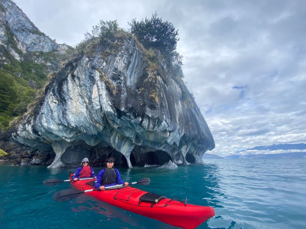 From left to right: In Pucon with Volcano Villarica; Mountains around Puerto Ibanez; Talia and I kayaking the marble caves of Puerto Rio Tranquilo