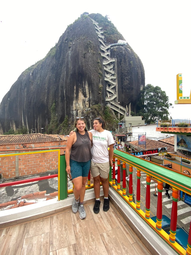From left to right to bottom: Flying into Providencia; Scuba diving with grey reef sharks; Talia and I did a painting class in Cartagena; Our last photo together at Guatape, Colombia; Rainbow Mountain in Peru; Machu Picchu in Peru