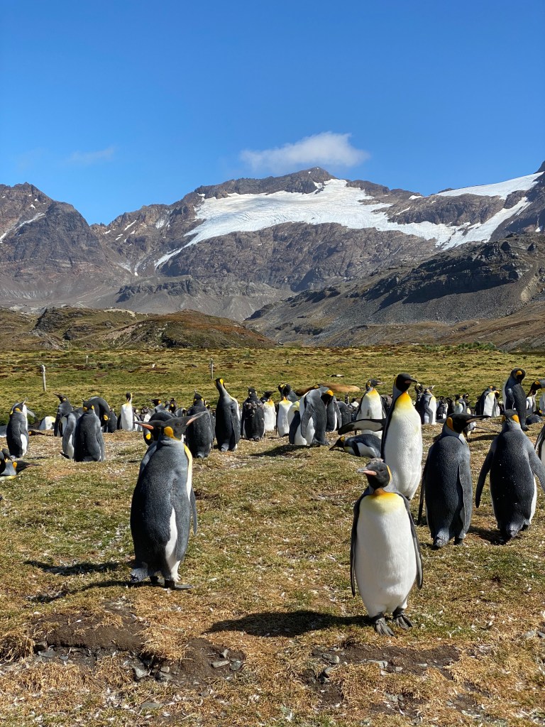 From left to right: Talia and I on a helicopter ride in Ushuaia; King Penguins in South Georgia; Standing on Continental Antarctica
