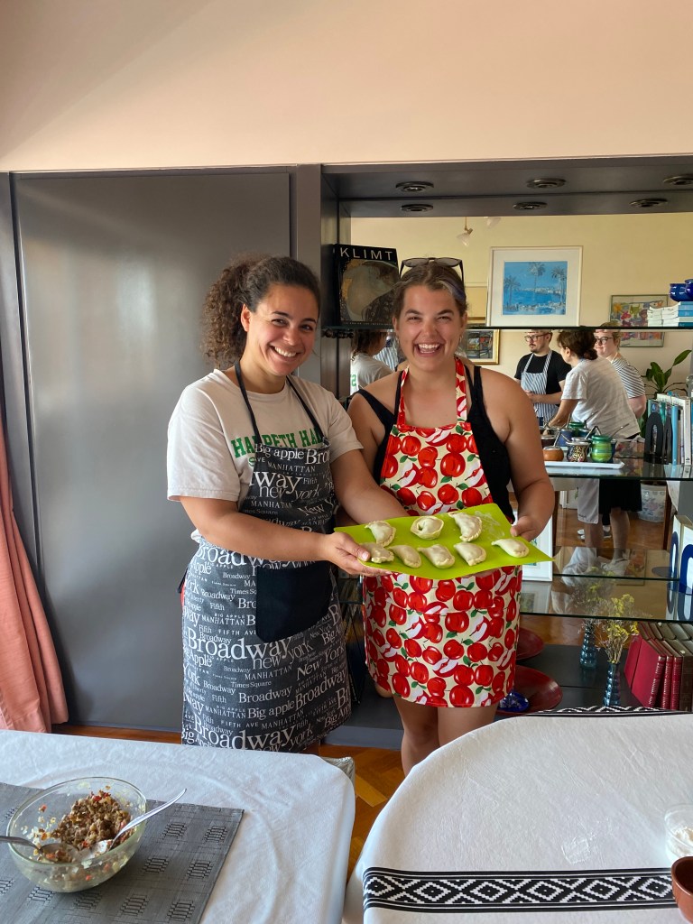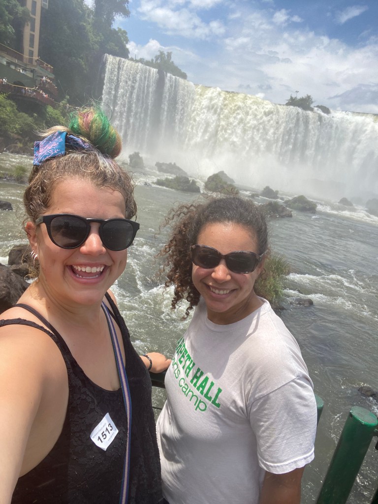 From left to right: Talia and I at an empanada and more cooking class; Talia and I at Iguazu falls; On the beach at Ponte del Diablo