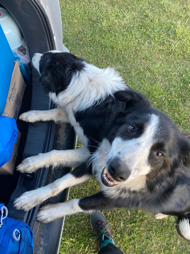 From the left to the right to bottom: Waterfall Del Alto Del Rio Ibanez; Talia demonstrating the wind at the waterfall; Some of the cute doggos at the farm stay; The view from near the farm stay; One of the many animals at the petrol station; The view from the hot tub at the farm stay