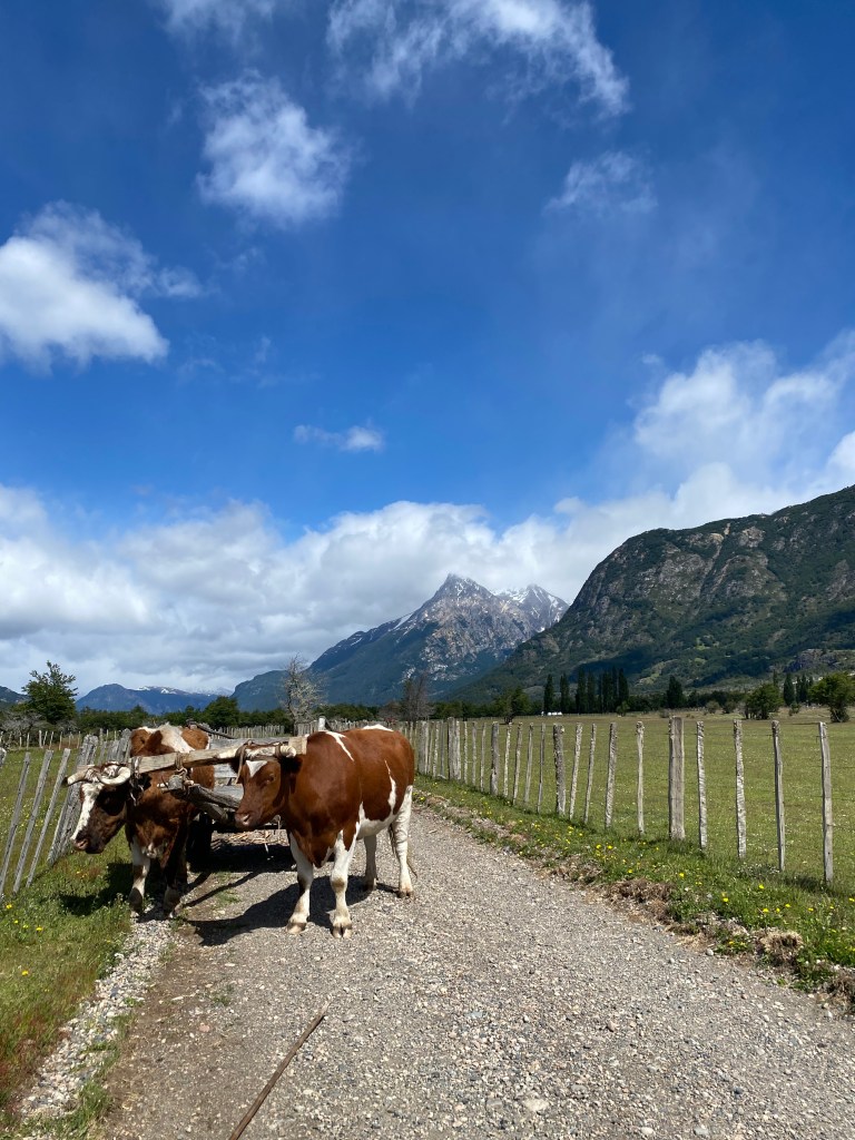 Picture this. You’re walking down a dirt road essentially in the middle of nowhere and occasionally pass a few farms as you go. The mountains are cloudless at the end of the road beckoning you forward when suddenly you see movement coming towards you. It’s a middle aged Chilean native walking towards you with a large stick in hand. Following him are two ox connected to a trailer of sorts and a few border collies running rampant. The photographer in me itched to take a photo but hesitated because some moments are just better to be lived in. I swear I felt like I was looking at the cover of a National Geographic magazine or some equivalent.