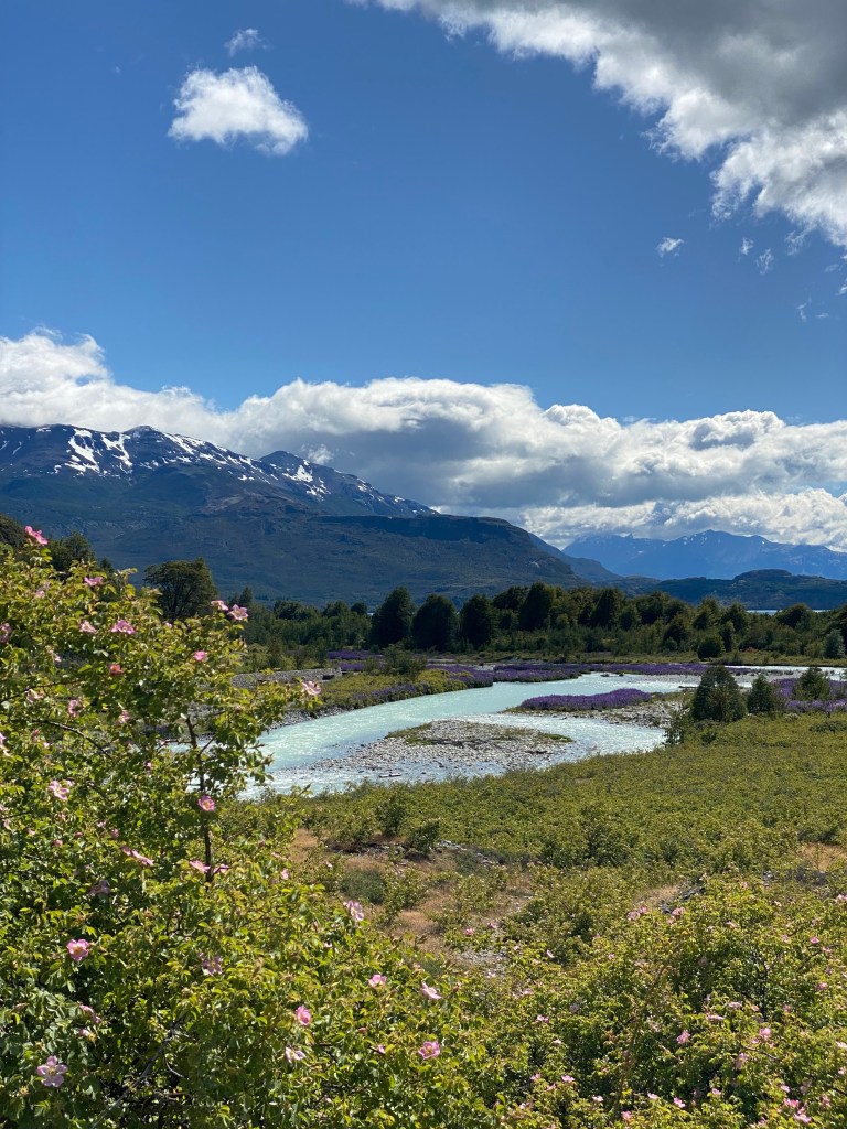 Once we had the music all set up in the car, because music is key to long drives, we drove from Coyhaique to what is essentially a farm stay near Puerto Ibanez. I think to this day it’s still one of our favorite places we stayed. We loved it so much that we actually spent an extra night here. We didn’t book anything more than a day in advance while we were driving to give us the freedom to do whatever we would like and stay longer in places we loved. The owners had a couple of dogs and a cat that adored our attention as much as we adored theirs. The day we arrived we drove closer to Puerto Ibanez to see the Mirador Del Alto Del Rio Ibanez, which is this incredibly powerful waterfall. I don’t think I’ve ever seen one quite like this before and then afterwards we headed into town for dinner before returning to the farm stay. The next day we wanted to go hiking so we drove out to some trail heads near Villa Cerro Castillo but you had to park quite far from the trail head, plus the trail head wasn’t the same as what google maps/all trails was saying. We got lucky in that there was a local on the road who gave us a lift to the trail head. Hitchhiking the ‘short’ distance from where he picked us up to where the trail started was fascinating. The driver was Chilean by birth but had spent 10+ years in South Africa and had the most intriguing accent. He told us about how he had come back to Chile to help his family enter the realm of tourism. Apparently they own quite a bit of land in the South of Chile and are looking at running group trips between farm stays, that kind of thing. Once he dropped us off at the trail head we realized that we had started too late for the difficulty of the trail and then on top of that we didn’t realize that you had to pay to do the trail. Instead we ended up walking to another trail and along the way we saw one of my favorite moments of the trip. I truly wish I could have captured the moment because it felt like a moment out of a National Geographic magazine.