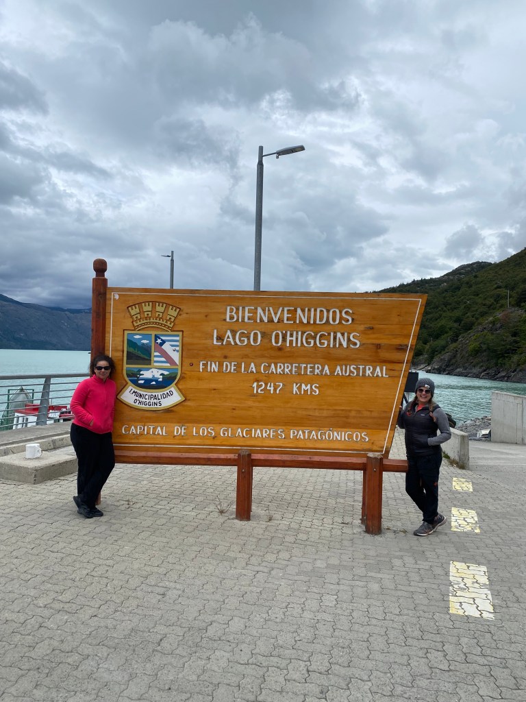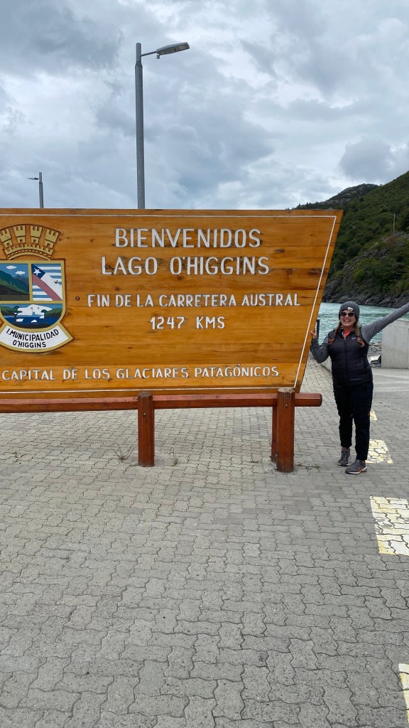 We walked back up the torturous hills in Tortel to our car so we could drive to Villa O’Higgins and then past Villa O’Higgins to the final stop to the Carretera Austral, Bahia Bahamode. The worst part of the road on this entire trip was the last five minutes at the entrance to Villa O’Higgins. At the time that we were traveling through you couldn’t drive on the main street of Villa O’Higgins due to construction. So there was a big detour around the main street to get anywhere in town. The sign for the end of the Carretera Austral is in Bahia Bahamonde, which is why we drove down there. The views from O’Higgins to Bahia Bahamonde were some of my favorites of the trip at that point. And of course, we took photos with the end of the road sign, because why not?